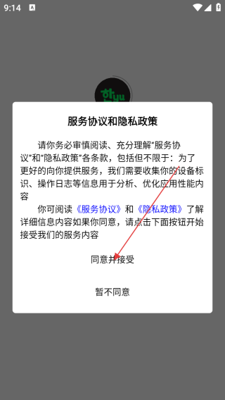 1、打开应用查看服务协议点击同意并接受。