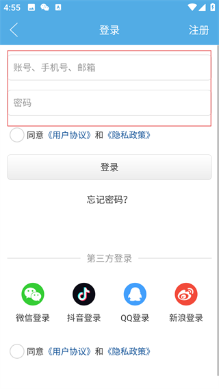 3、在登录界面,可选择账号密码登录,或微信、抖音等第三方登录方式。