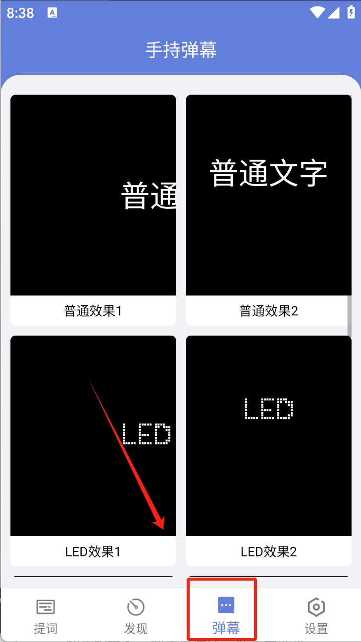 3、点击“弹幕”按钮,查看手持弹幕的不同显示效果,并选择适合的样式。