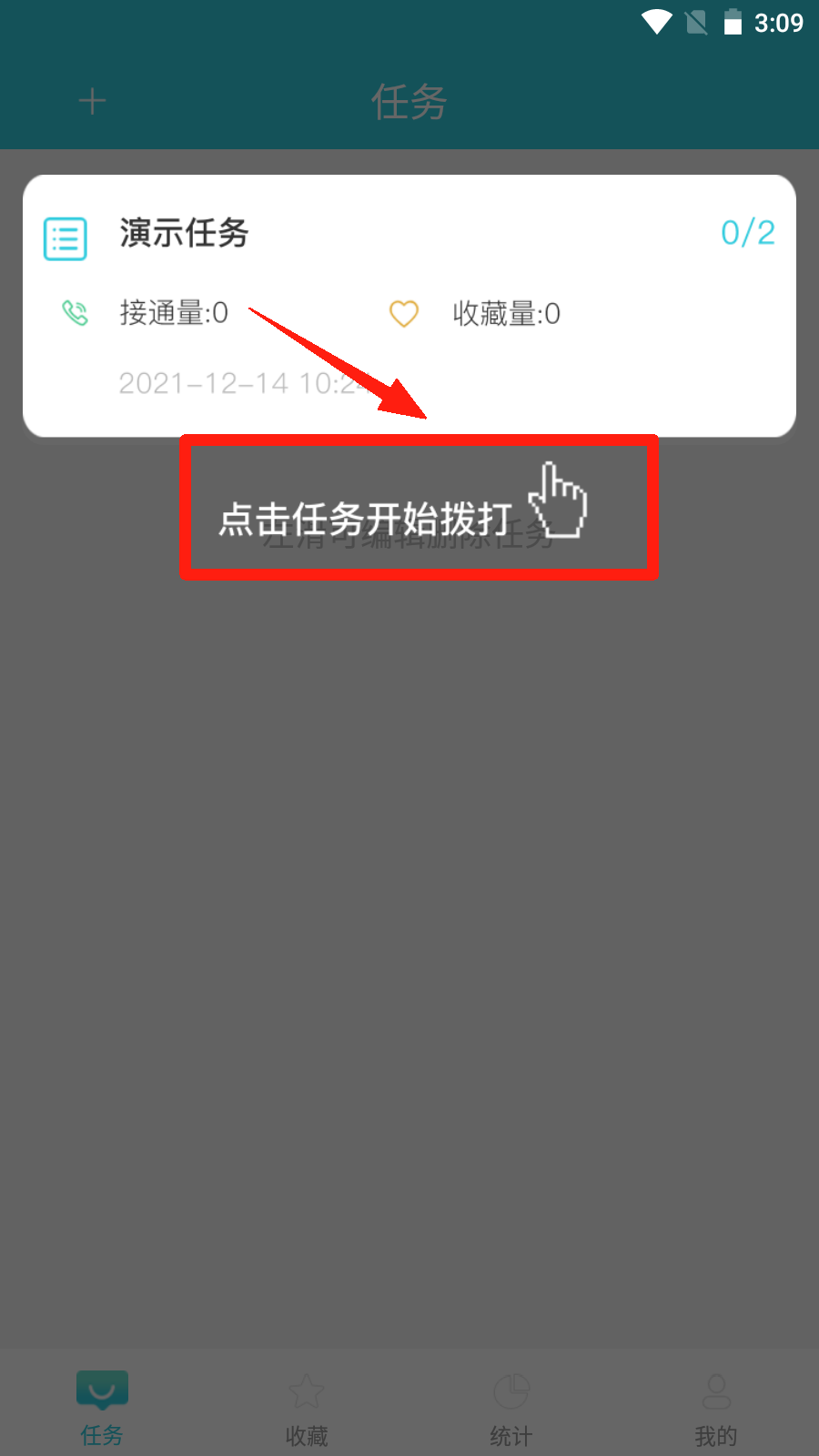 2、查看并点击演示任务。点击“点击任务开始拨打”以进入任务详情。
