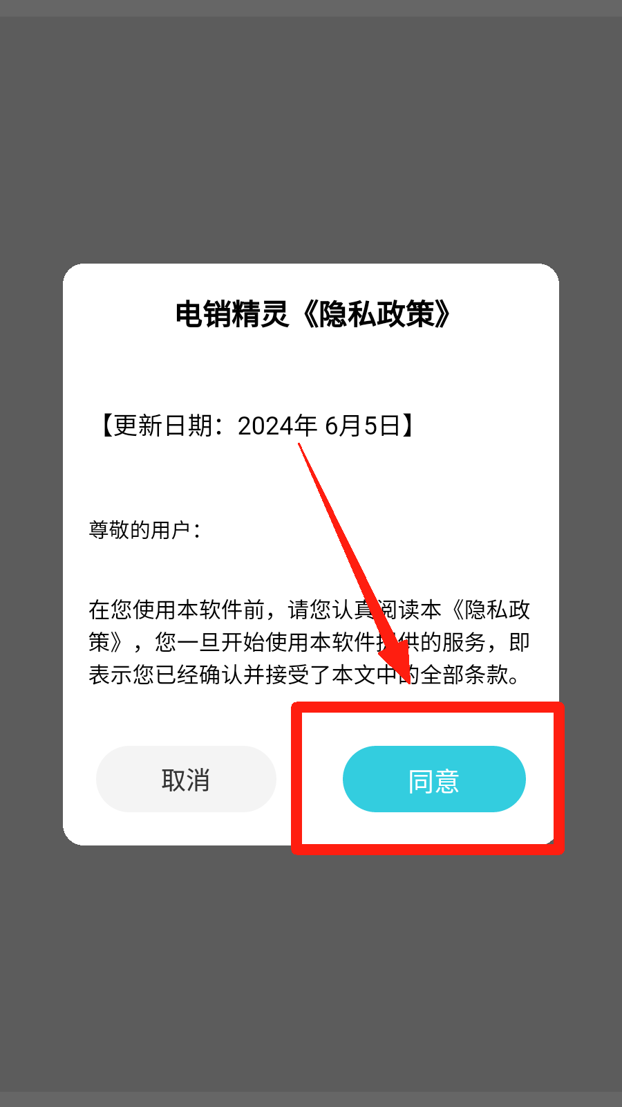 1、阅读并同意隐私政策。点击“同意”按钮以继续使用软件。