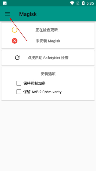 1、打开Magisk应用,主界面会显示更新检查状态、Magisk安装情况等信息。