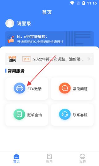 1、打开应用进入首页点击ETC激活即可激活使用ETC。