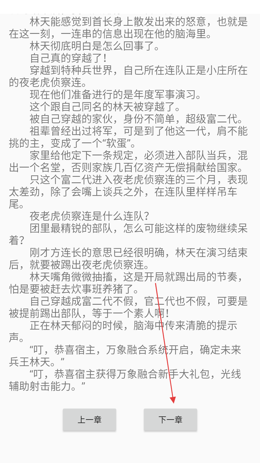 3、阅读完章节,点击【下一章】继续阅读后续情节。