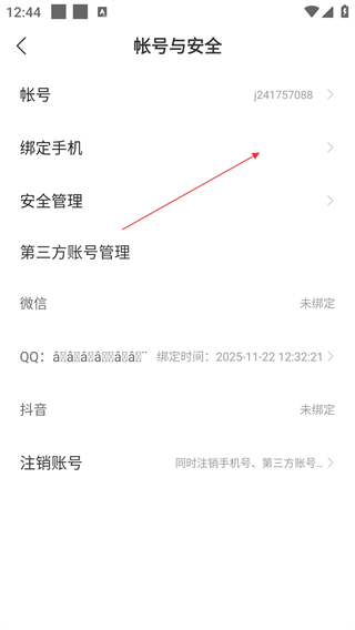 3、在设置页面,点击【帐号与安全】,可进入账号安全管理界面,管理账号信息。