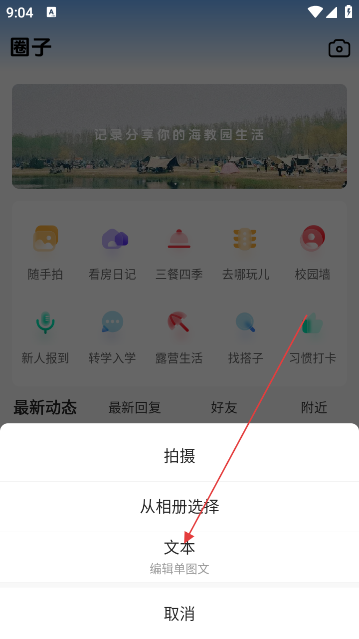 3、点击发布后,会弹出选项,选择【文本】,即可进入文本编辑发布的准备环节。