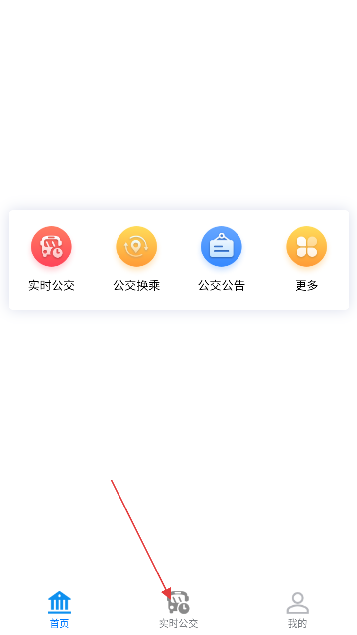 1、打开公交应用,点击底部【实时公交】,进入实时公交页。