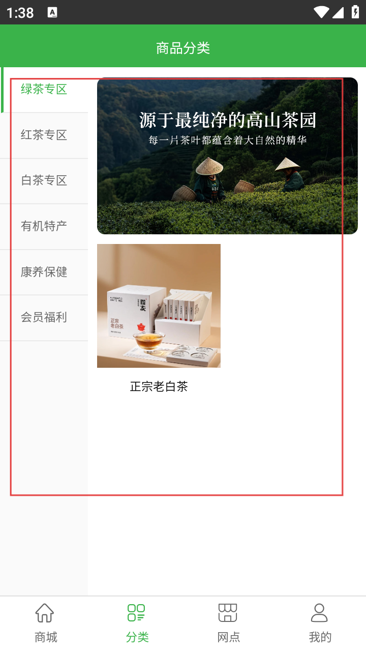 2、在商品分类页,选对应茶类专区,如找老白茶就点进相关区域找商品。