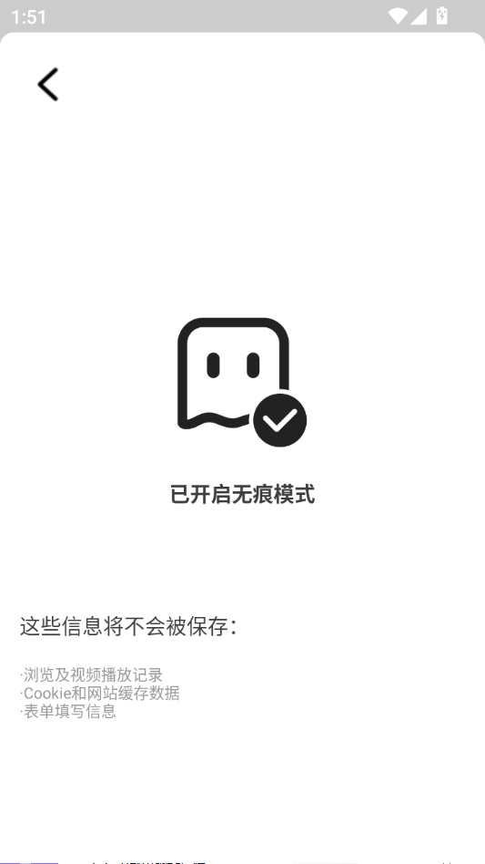 3、返回主界面,即可在无痕模式下浏览网页,临时数据将自动清除。