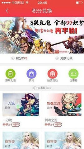 2、登录就有积分,积分商城兑换礼品。