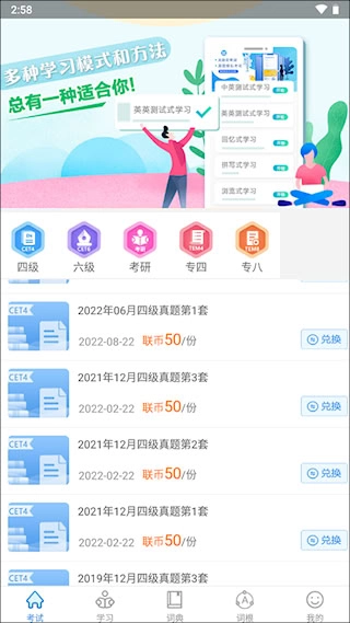 登录之后,主界面会呈现各类考试真题资源,大家可以根据自身需求进行兑换。