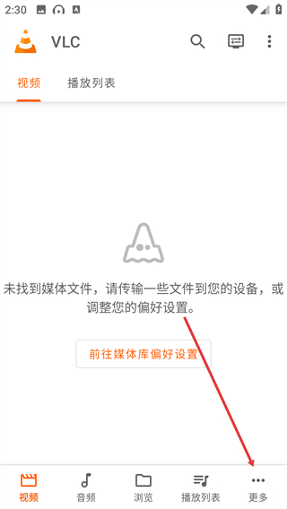 1、下载安装好vlc播放器,进入软件后将自动获取当前设备内的多媒体文件,也可以点击右上角的刷新按钮重新导入。