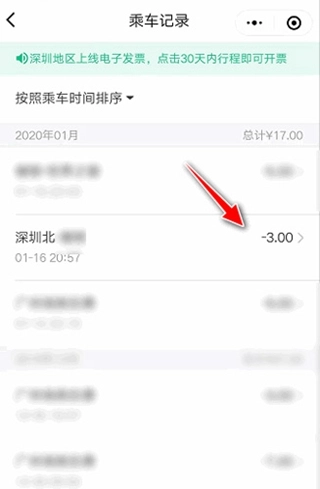 系统会自动跳转至微信小程序的乘车码页面,在该页面中可查找需开具发票的乘车记录。