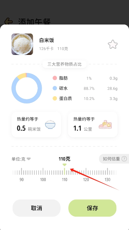 在这里能够对食物的种类、数量或者卡路里数值进行修改,也可以添加新的食物记录。