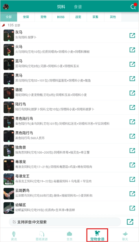 - 饲料大全:捕捉宠物和坐骑的必备指南。