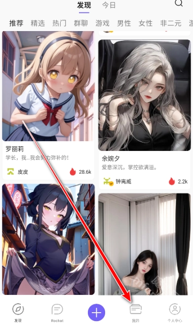 -海量现成角色:库里有超多现成的AI角色,从温柔奶狗到腹黑反派都有,直接点就能聊,不用自己从零养。