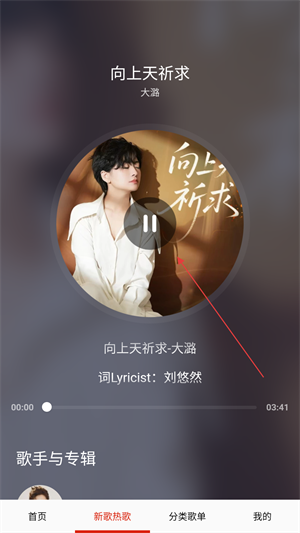 4、在播放界面中,可以通过中间的【播放/暂停按钮】来控制音乐播放,轻松享受听歌体验。