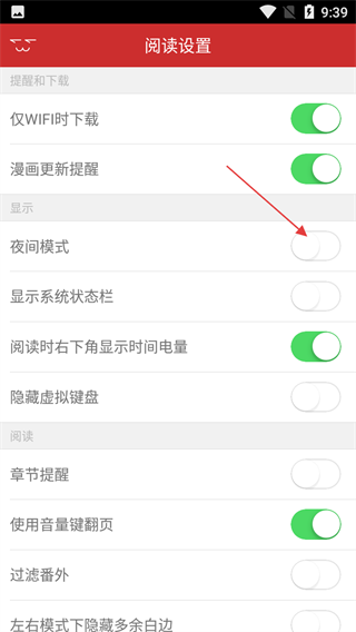 4、在阅读设置中,可开启夜间模式以适应夜间阅读环境,还能设置章节提醒、使用音量键翻页等功能,优化阅读体验。