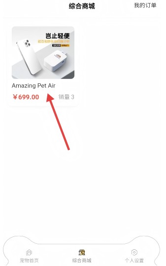 2、在综合商城中点击【AmazingPetAir】商品,进入产品详情页。