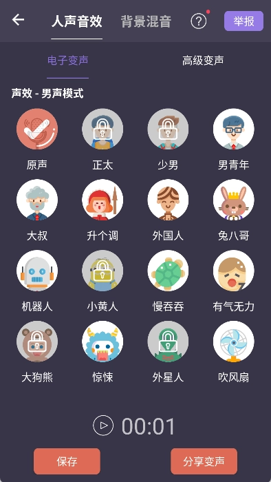 -声线魔法盒:轻轻一点,就能切换萝莉音、大叔音、精灵音、怪兽音……你的声音就像奇幻世界的万花筒,随心变幻。