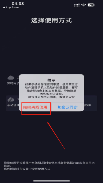 2、选择使用方式:在“选择使用方式”页面,点击“本地离线使用”选项。