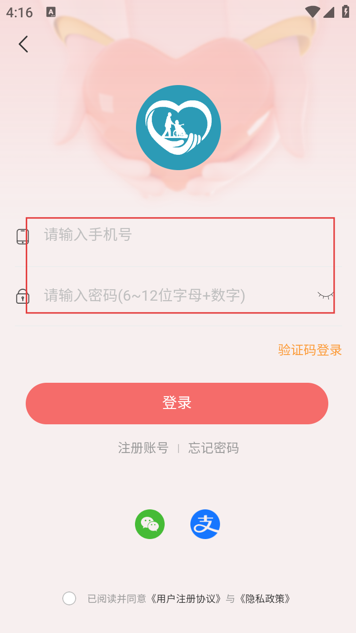 3、进入登录页面,输入手机号、密码,准备登录。