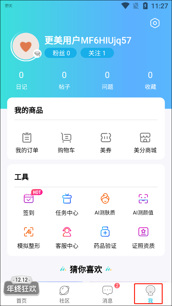 7、在我的商品中可以查看我的订单、购物车、美券以及美分商城。