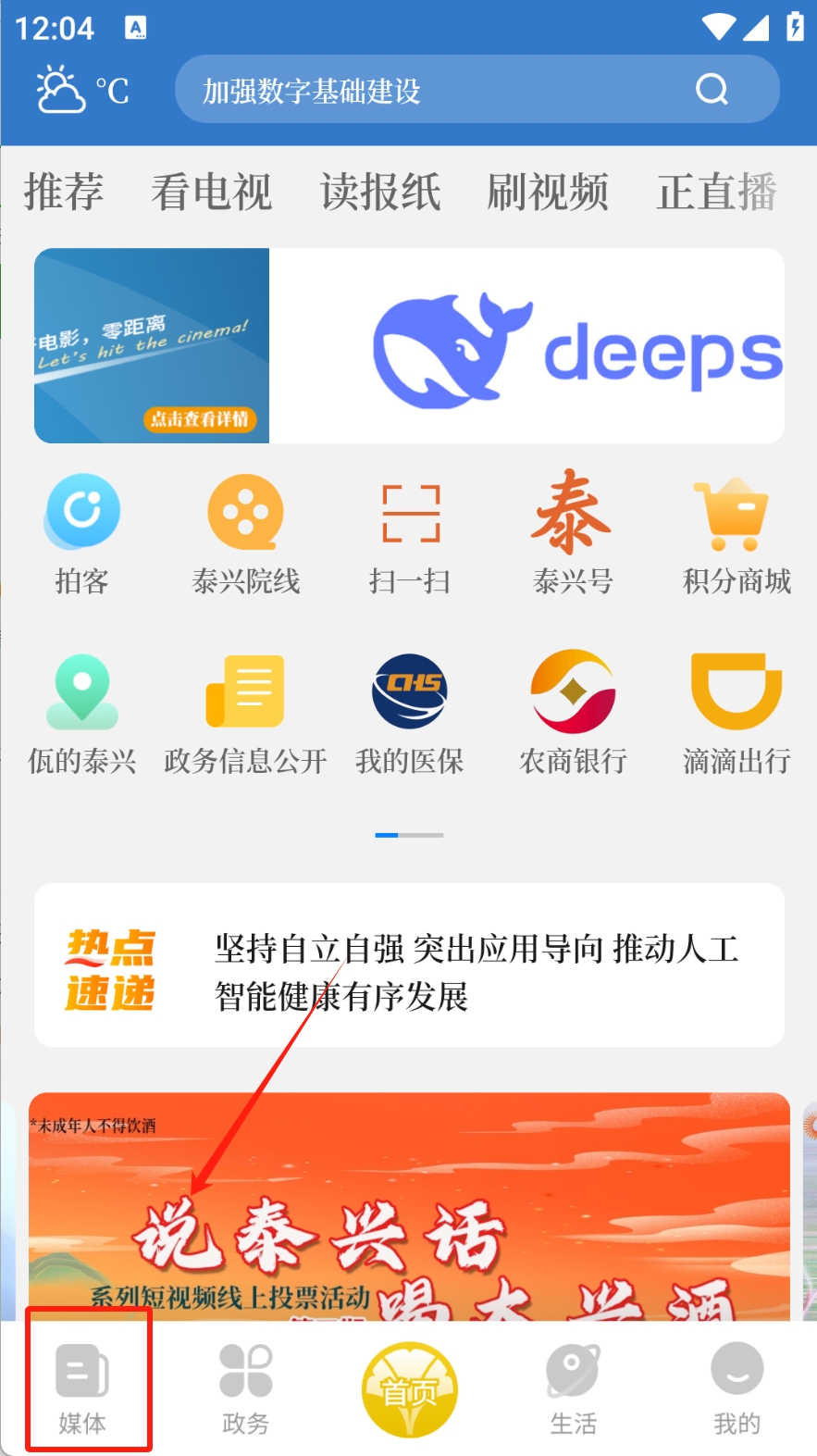 1、访问媒体内容:点击底部导航栏的“媒体”图标,查看新闻和视频。