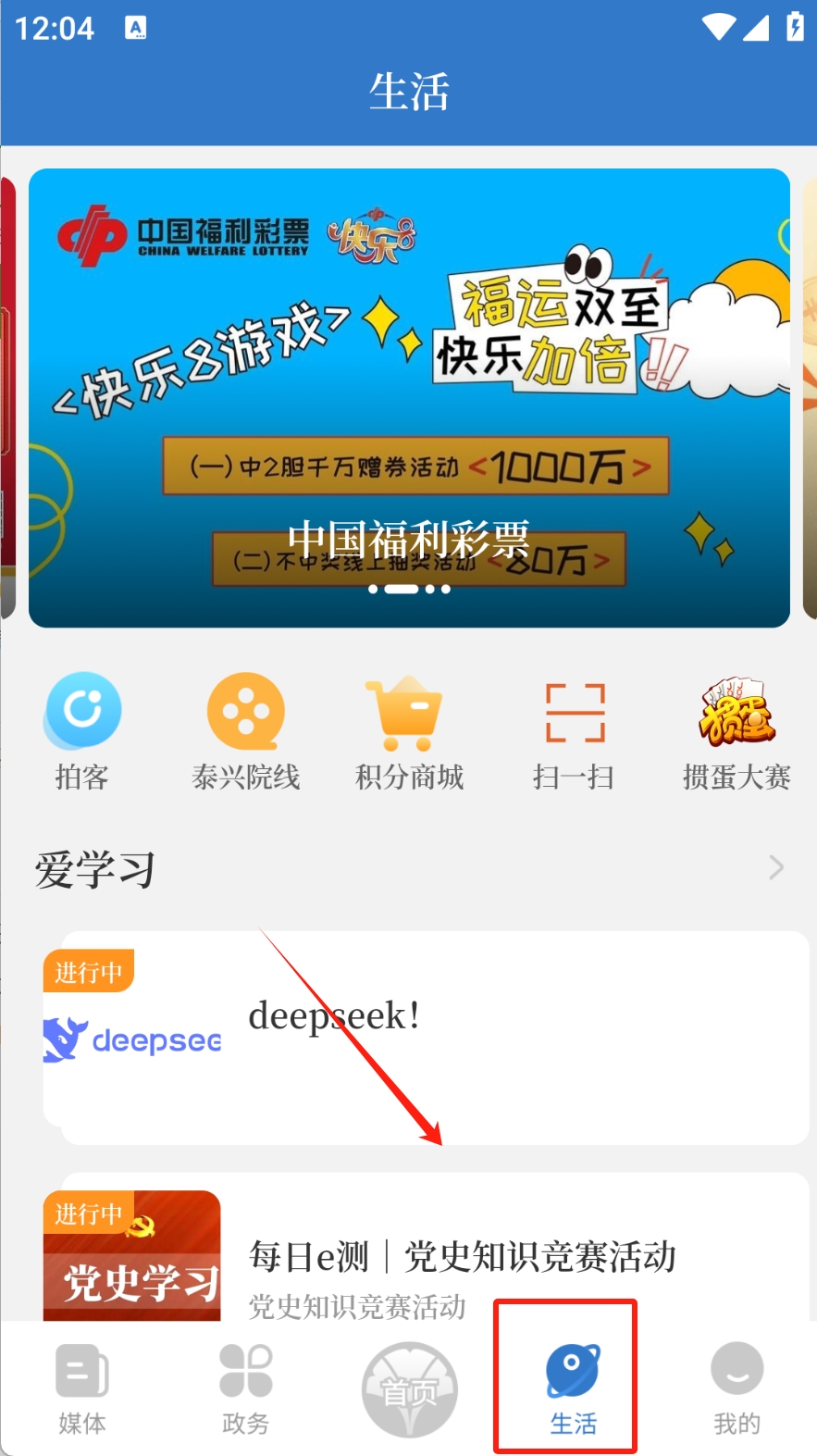 3、查看生活信息:点击底部导航栏的“生活”图标,获取生活相关的信息和活动。