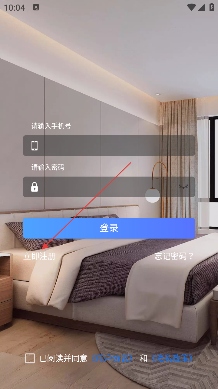 2、进入登录页面,若有账号可输入手机号和密码登录,没有则点击【立即注册】。