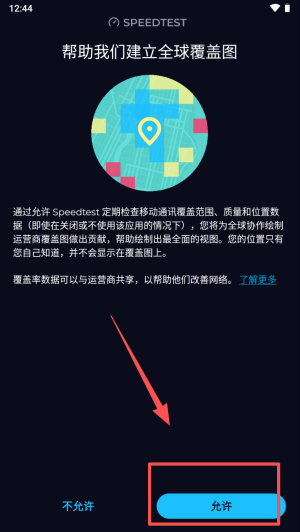 4、选择“允许”后台收集覆盖率,助运营商优化网络且你的位置不公开。
