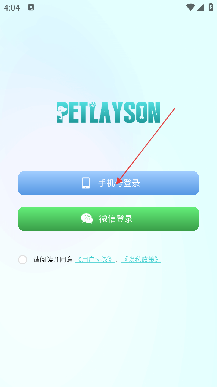 1、打开莱森宠物,首先会弹出隐私保护政策提示框,仔细阅读后,点击【同意并继续】。