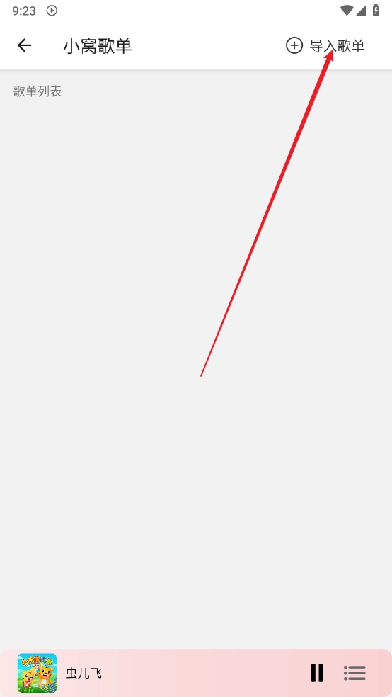 在小窝歌单页面点击右上角的"导入歌单"。