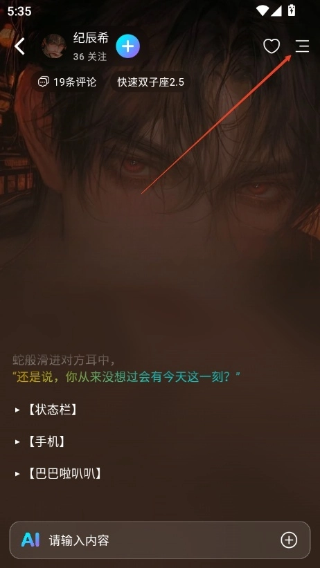 进入rubii后,随意挑选一个自己喜欢的聊天界面,接着点击右上角的三条横线图标。