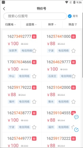 在选购手机号码时,您可以先进入特价号或靓号的界面,挑选一个自己喜欢的号码。