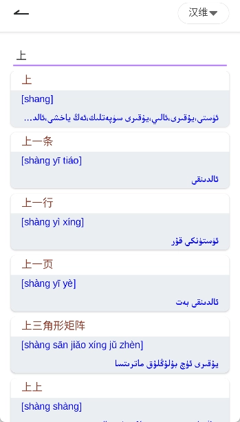 你可以在搜索框里输入汉字、维语或者英语来搜索,这样就能得到解析结果了。