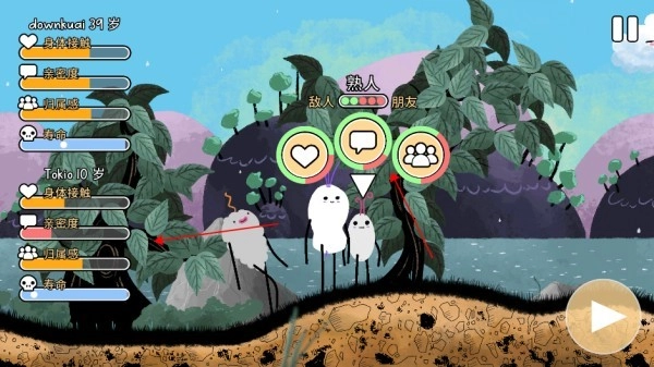 首先,你得先给你的角色起个名字,然后进入游戏。点击播放按钮开始,接着点击“行走”选项——这其实就是角色成长的过程,连续点击还能让成长速度变快。要是想和其他萝卜互动,就点击除了你自己角色以外的萝卜。屏幕左侧会显示人物信息,那里的绿圈越大,互动成功的概率就越高;互动成功的话好感度会加1,要是失败了好感度就会减1。