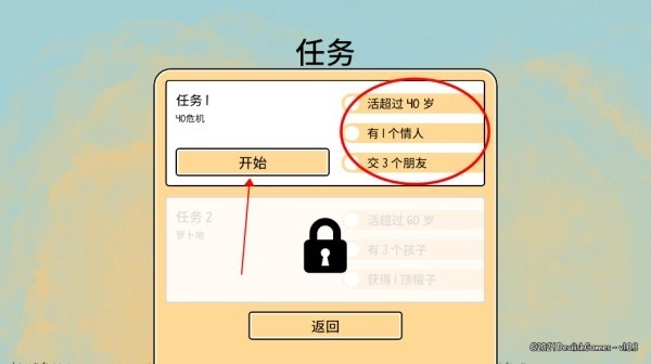 在漫步人生的自由模式里,你可以随心所欲地游玩,但要解锁这个自由模式,得先完成五个任务才行,第一步就是点击任务。