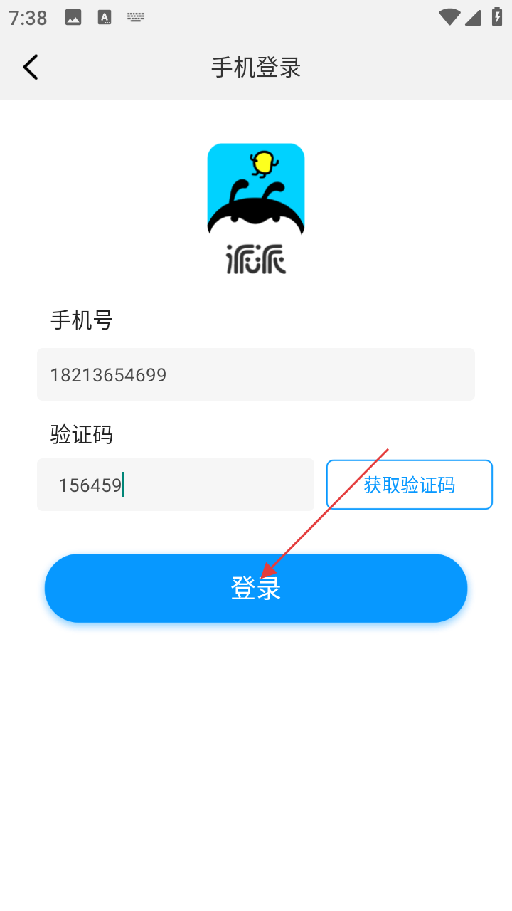 4、在手机登录页面,输入好手机号、验证码后,点击【登录】按钮,完成登录操作。