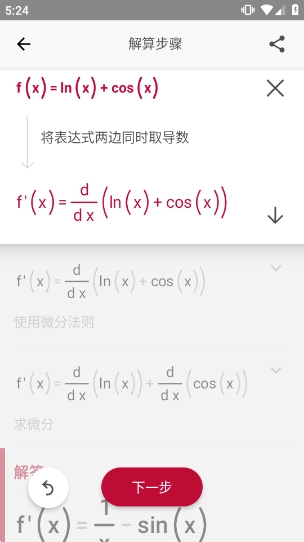 在默认设置里,应用会直接呈现求导的答案,当然我们也能够根据自己的需求进行设置。