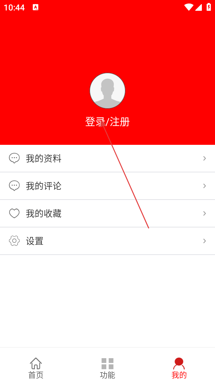 2、在个人中心界面点击【登录/注册】进入登录界面。