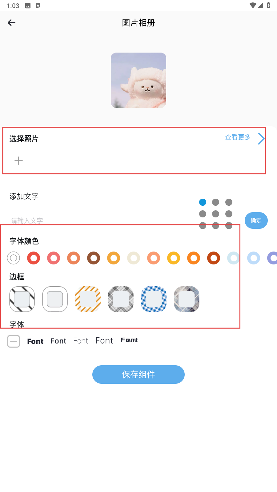 2、进入组件页面后,可以自己设置图片、字体、边框等。