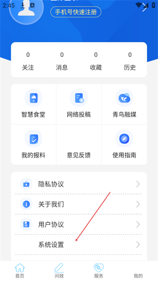 2、在个人中心,找到并点击【系统设置】,进入设置界面。
