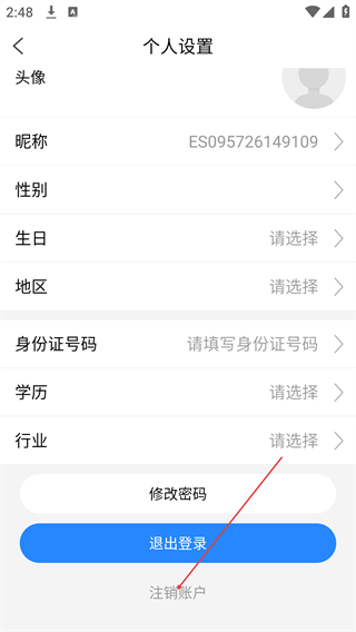 4、在个人设置页,点击【注销账号】即可进入注销账号流程。