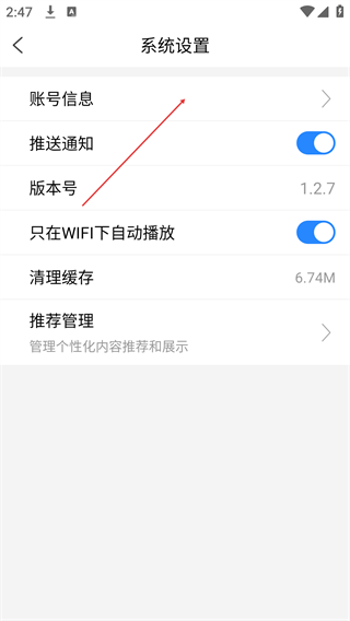 3、在系统设置中,点击【账号信息】,进入个人设置页面。