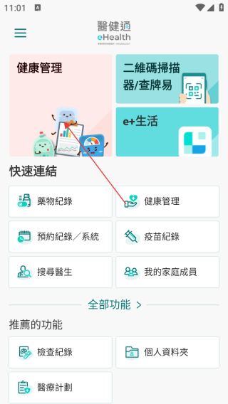1、打开应用进入首页点击健康管理。
