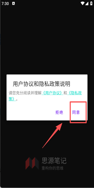 1、阅读协议点击“同意”授权,即可进入“重构你的思维”笔记空间。