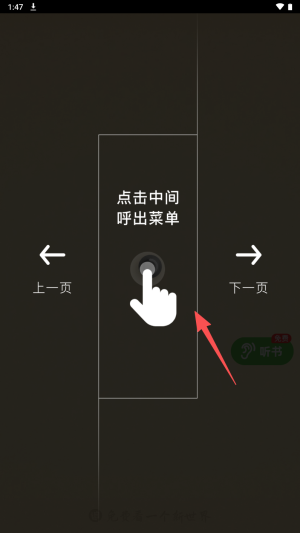 2、在阅读界面,点击屏幕中央可呼出菜单,进行阅读设置。