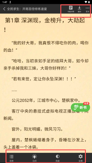 2、阅读界面自定义设置,提供字体大小与背景色调调整功能,满足不同用户的视觉阅读偏好需求。