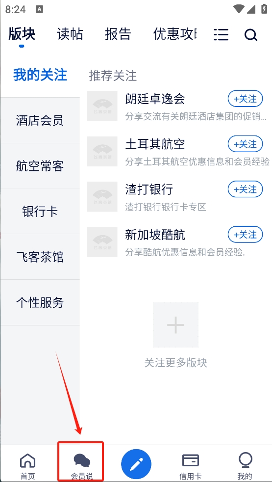 2、点击下方的“会员说”图标,参与社区讨论和分享旅行经验。